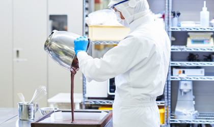 2010年4月に竣工した大阪工場は、水菓子(カップデザート)、焼き菓子(クレープクッキー他)、チョコレート菓子といった幅広いお菓子を製造しております。
