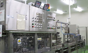 仕込み釜については特殊なミキサーを使用し、より滑らかで、きめの細かい食感の商品作りができるようになっております。出来上がった充填液は、高速充填機で容器に充填・密封し、殺菌を行います。