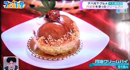 2024年10月12日放送の朝日放送テレビ「おはよう朝日土曜日です」の「なないろリサーチ これどうなん!」のコーナーで、秋の栗まつり—「丹波栗のクリームパイ」が紹介されました、ありがとうございました。